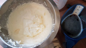 - Jetzt sofort die kalte Schlagsahne zufügen und unterrühren.